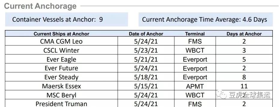 根据洛杉矶港口平台Signal的数据,周三船只在船锚上的平均停留时间从上个月的7天减少到4.6天。